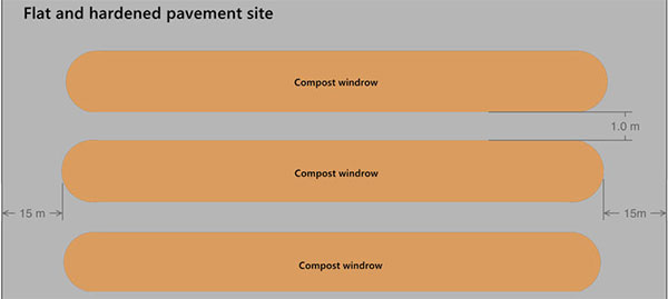 - Передняя и задняя части материала должны иметь место для поворота на расстоянии 15 м, междурядье компостной горы из полосового материала должно быть не менее 1 метра.